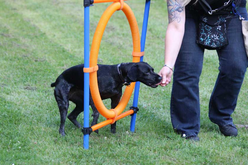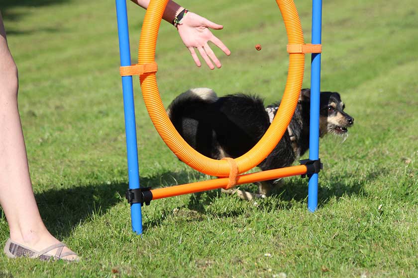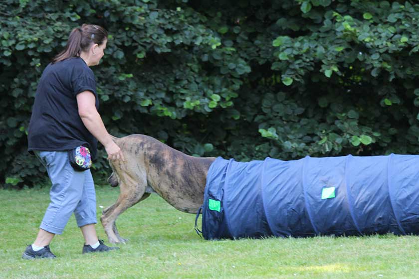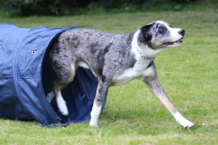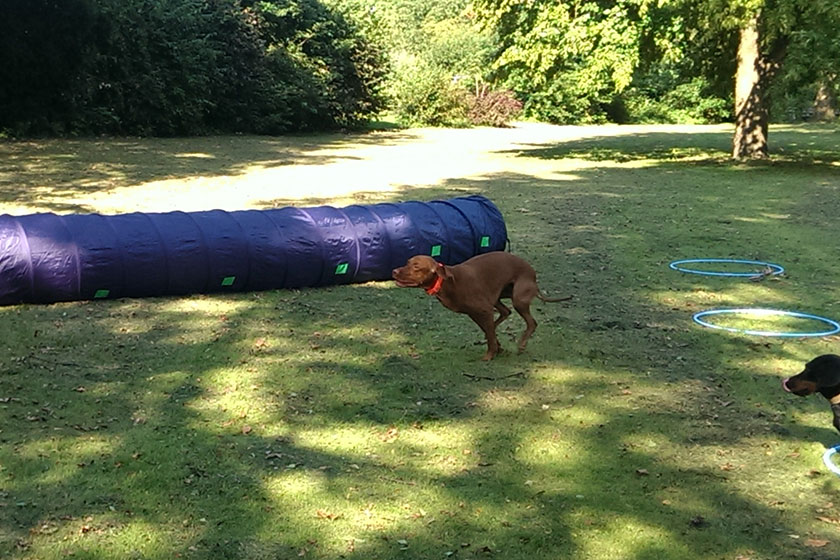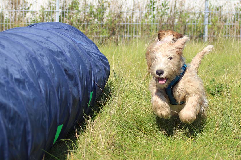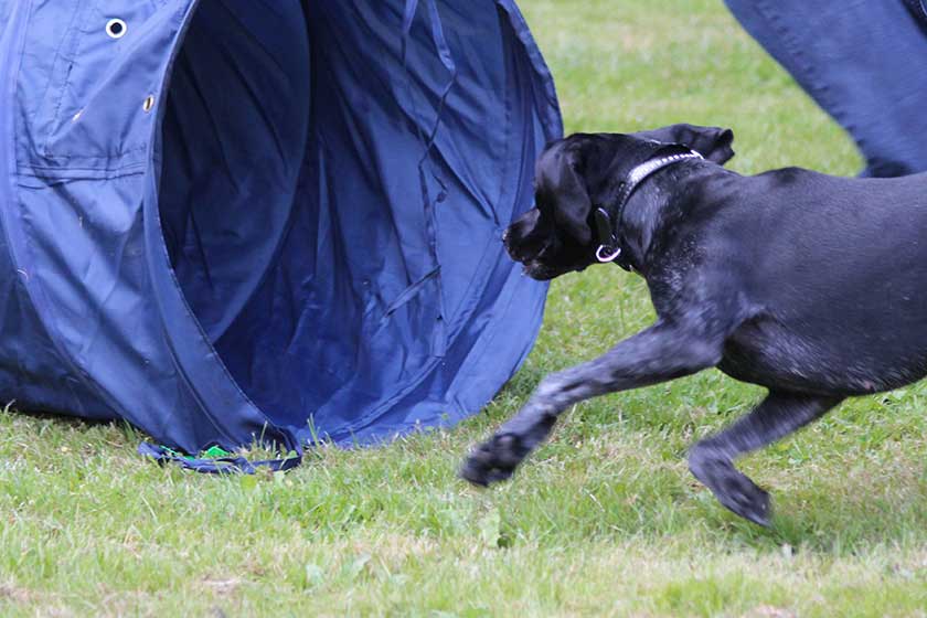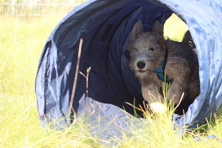 Erstes Hindernis des Parcours: der Tunnel. Jack schießt raus und schaut schon erwartungsvoll auf neue Anweisungen, wo es weitergeht...