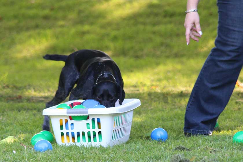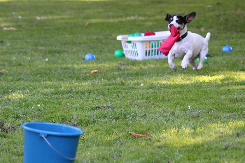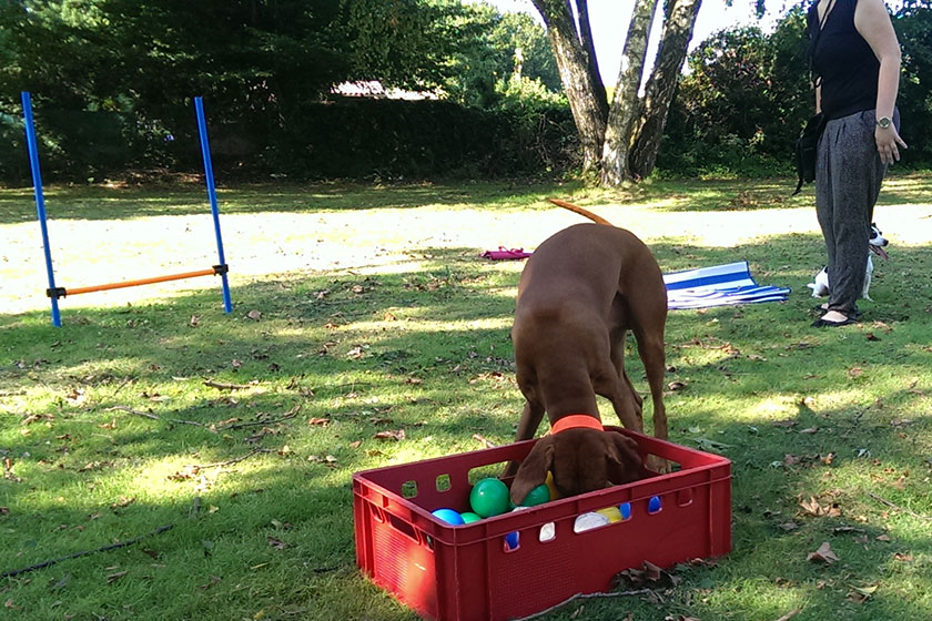Nicht ganz einfach sich aus den ganzen Spielzeugen eines heraus zu suchen und zu apportieren.