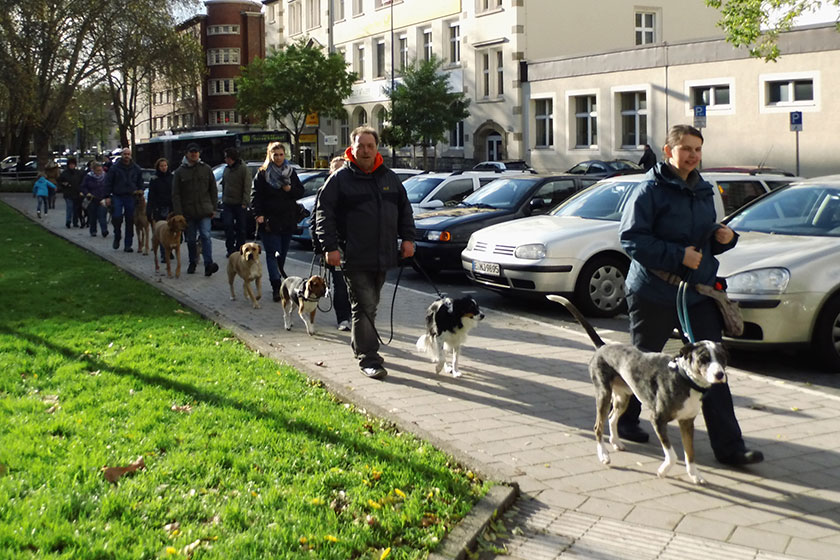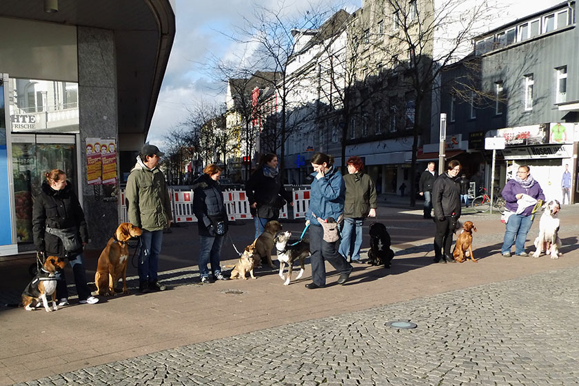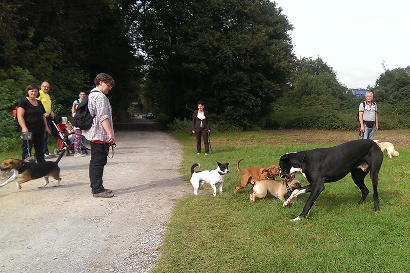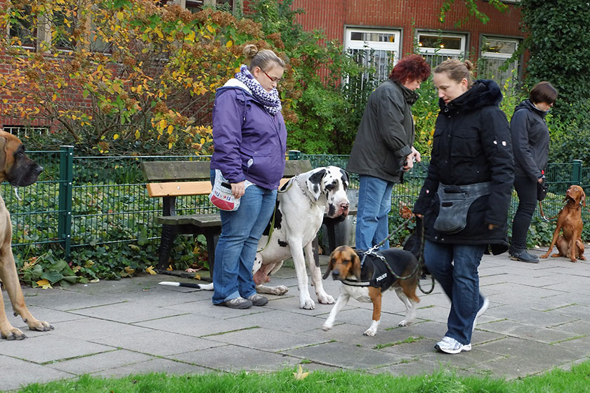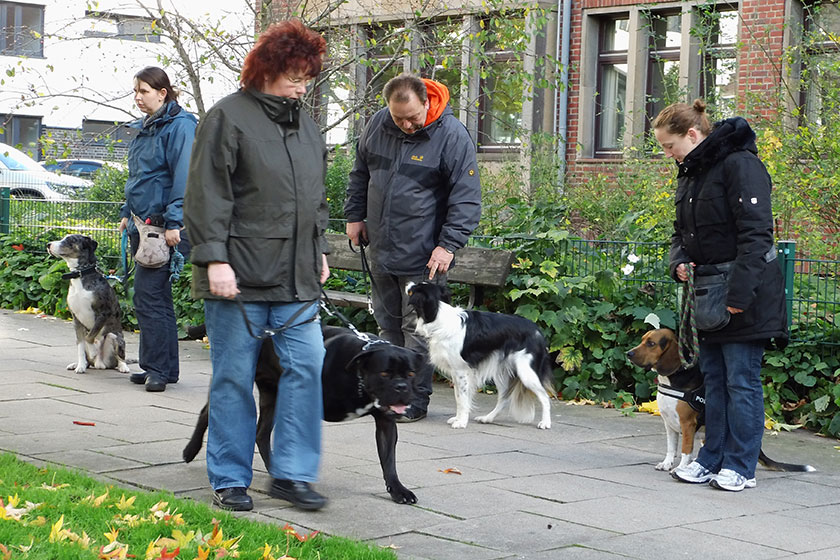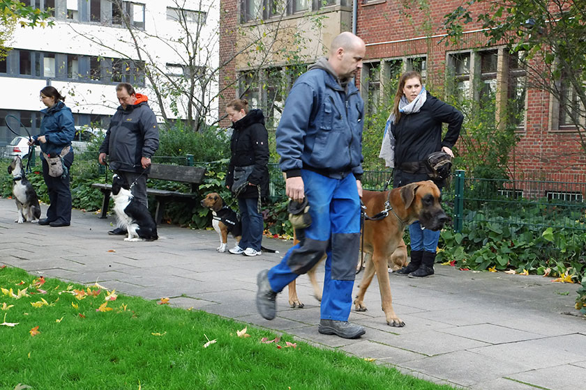 Gegen Ende der Stunde beeindruckt kein Rollator oder Spaziergänger mehr die Hunde.