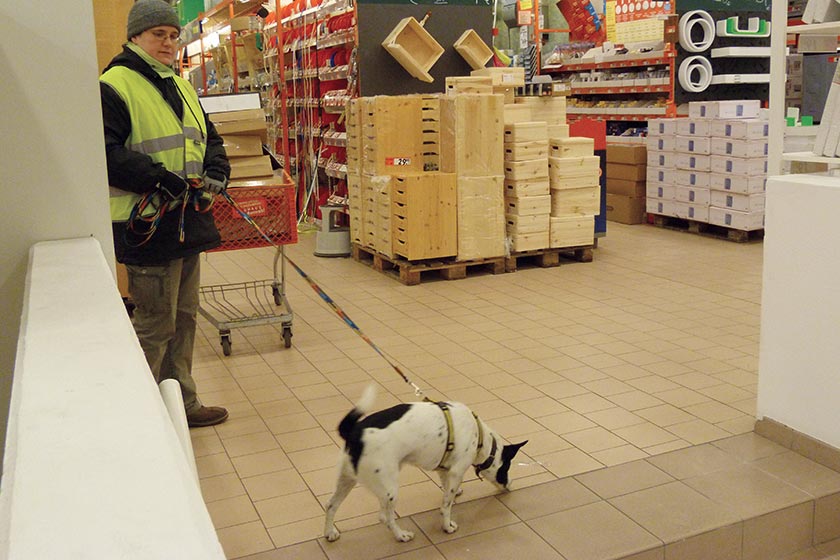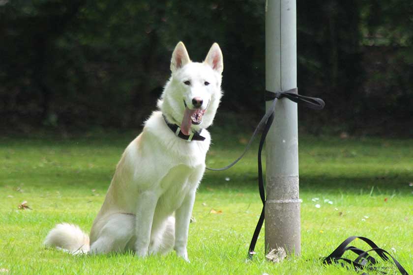 Wie verhält sich der Hund, wenn er angebunden warten muss und sich plötzlich vor ihm etwas abspielt...
