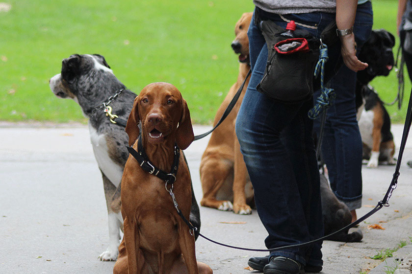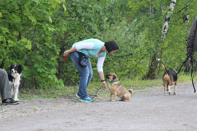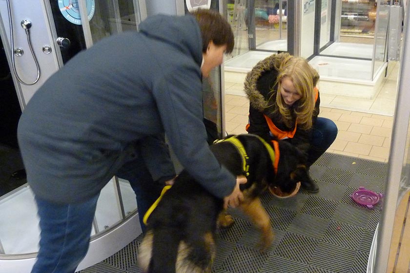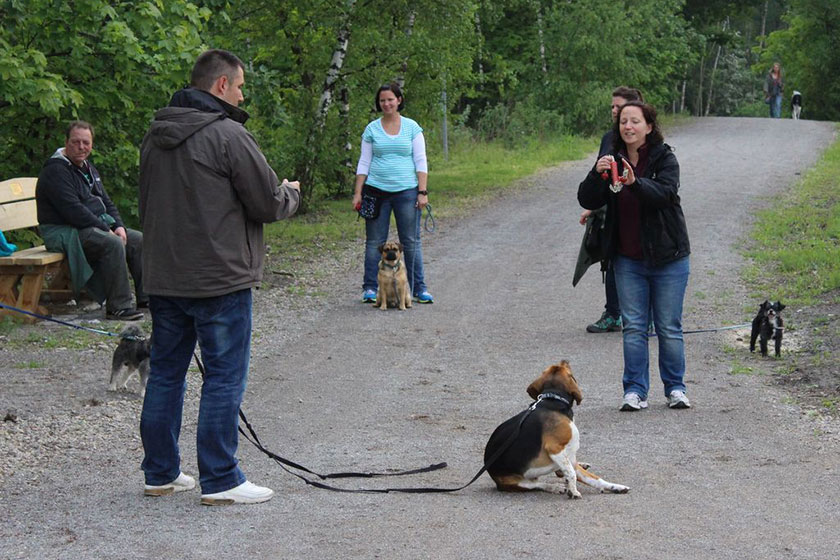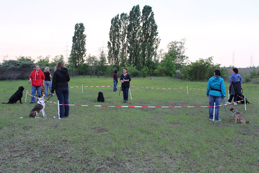 Nach und nach lernen die Hunde ruhiges Sitzenbleiben und Abwarten bis Frauchen oder Herrchen wiederkommt.