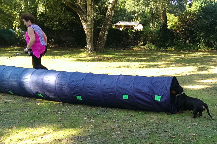 "Kann ich mich durch den langen Tunnel trauen, wenn Frauchen mich schickt?!" - ich kann.