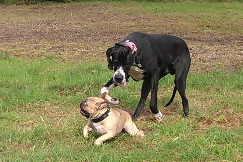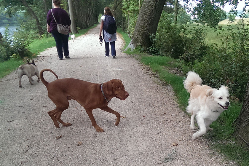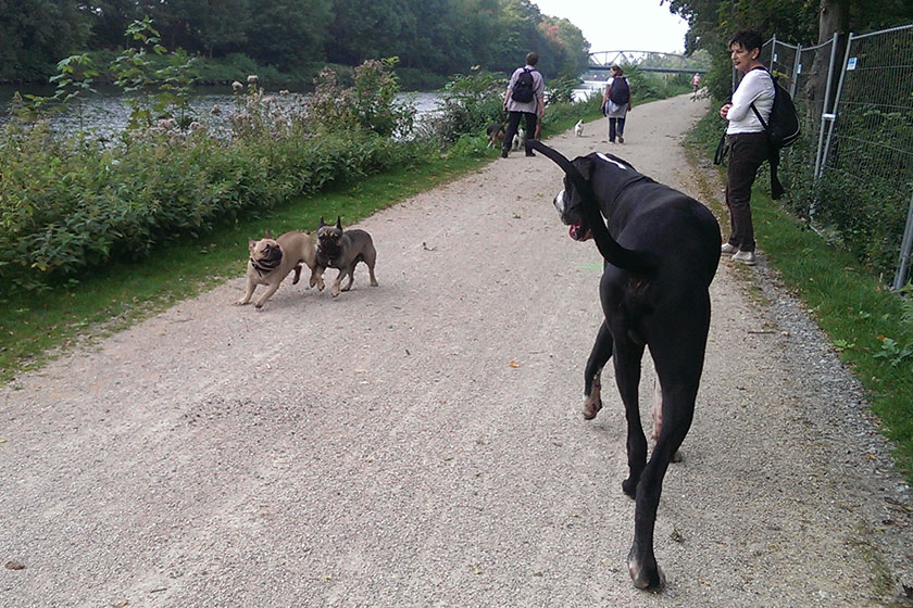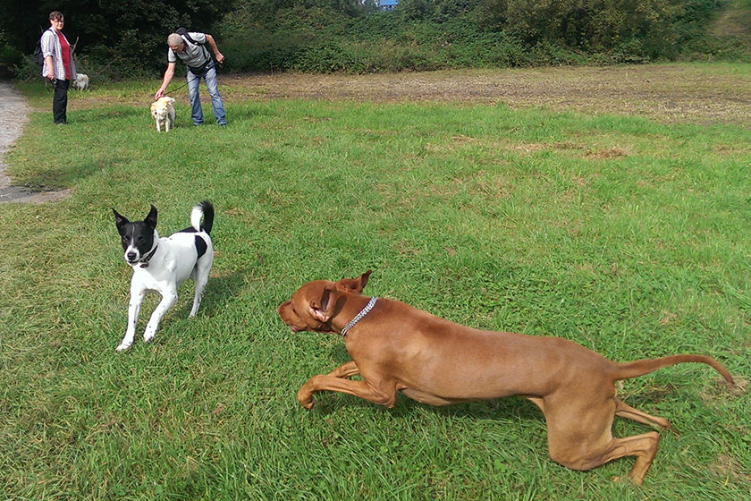 Max und Churro können problemlos aneinander vorbeilaufen, ohne sich ablenken zu lassen.