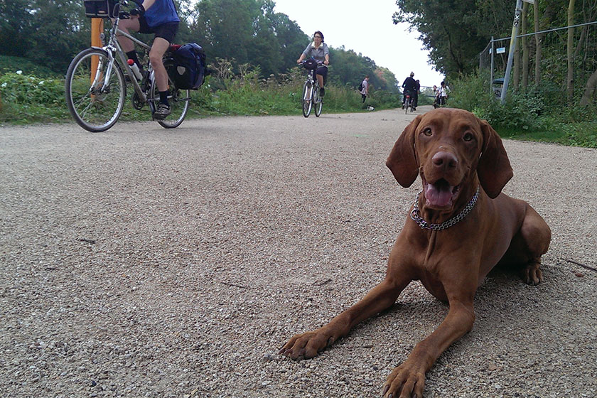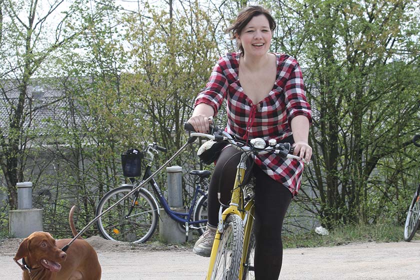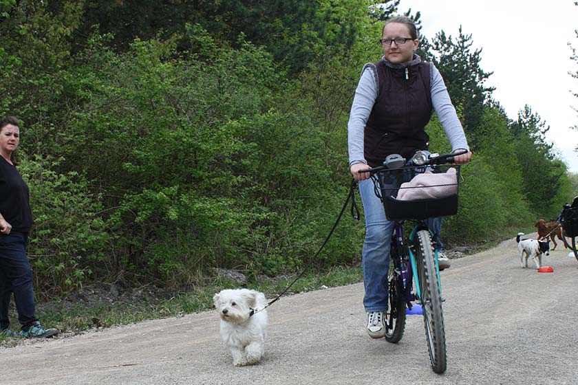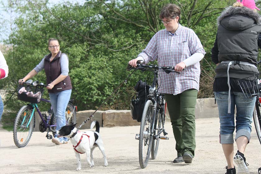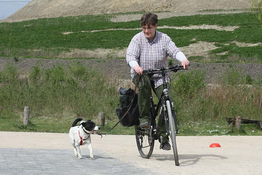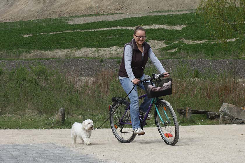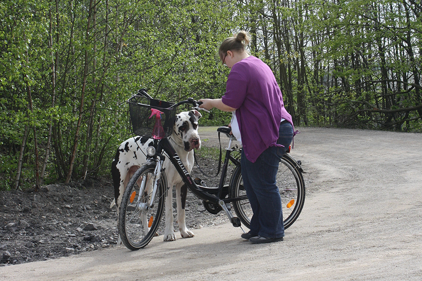 ... und Fahrradfahrer sind ihr unheimlich. Aber mit Geduld und Übung wird sie bald entspannter damit umgehen können.