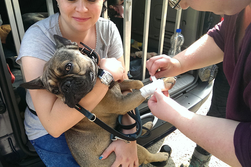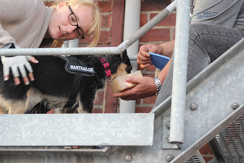 Auch das Flatterband, was Hunden häufig Angst macht, wird routiniert genommen.