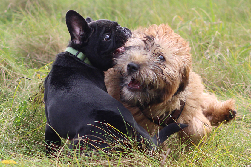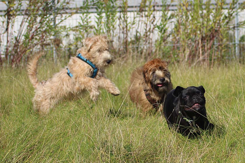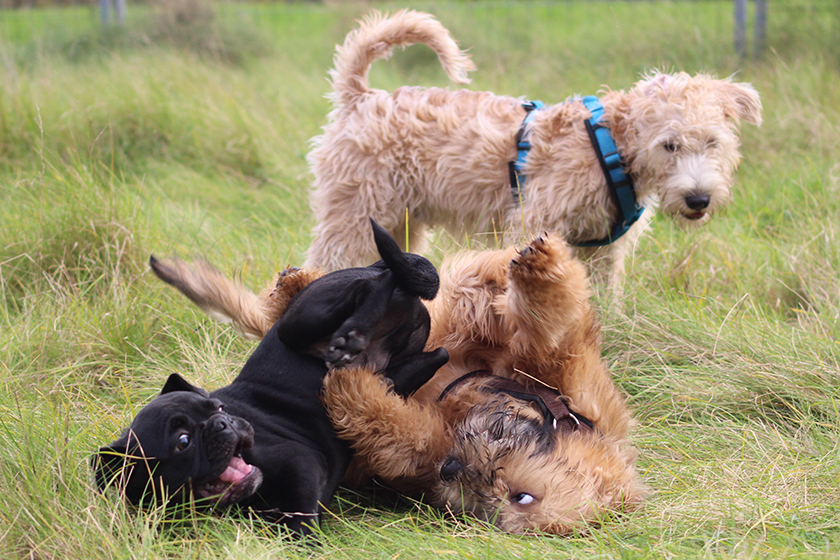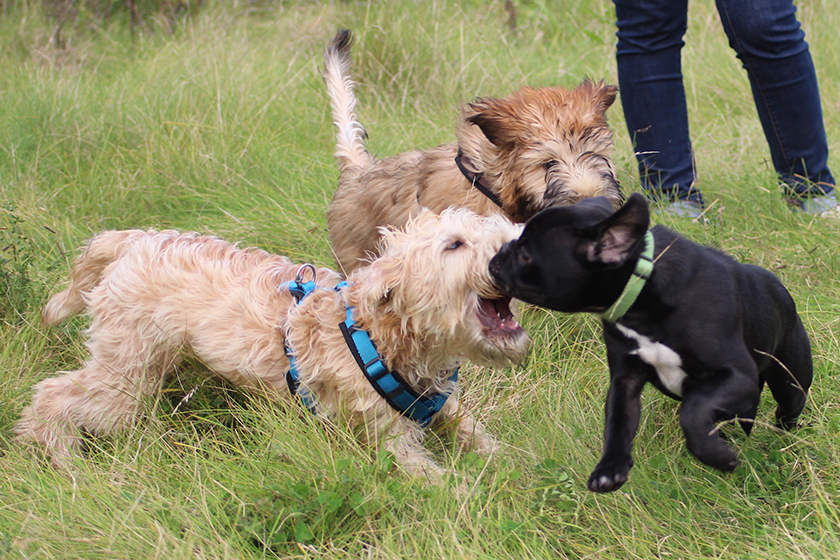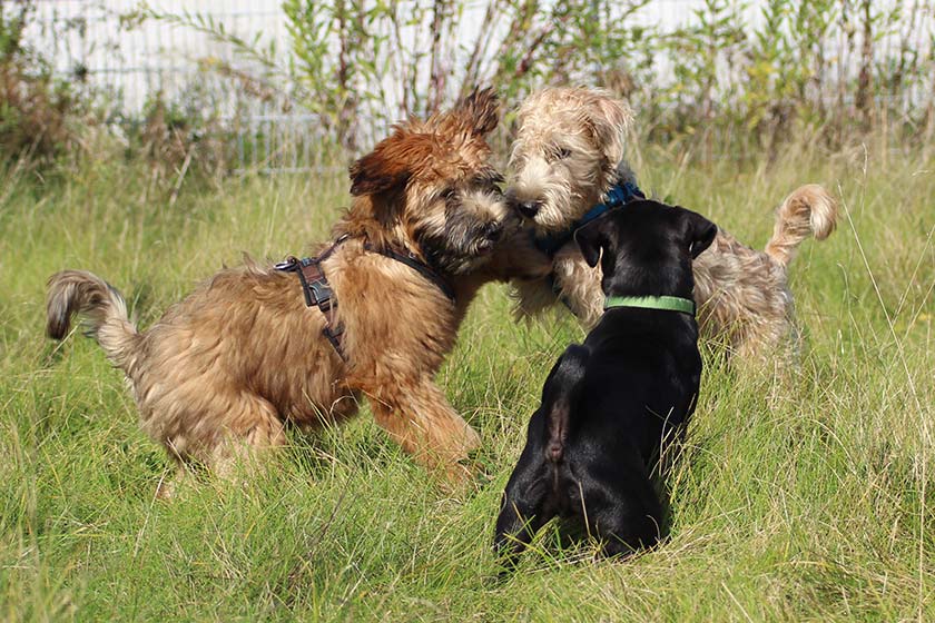 Und nach dem Lernen darf eine ausgiebige Spielzeit mit den Hundekumpels nicht fehlen.