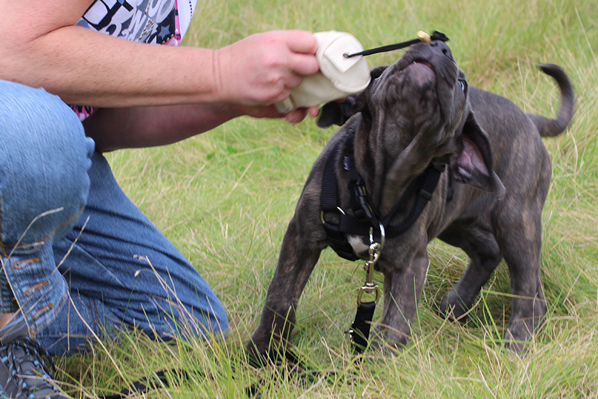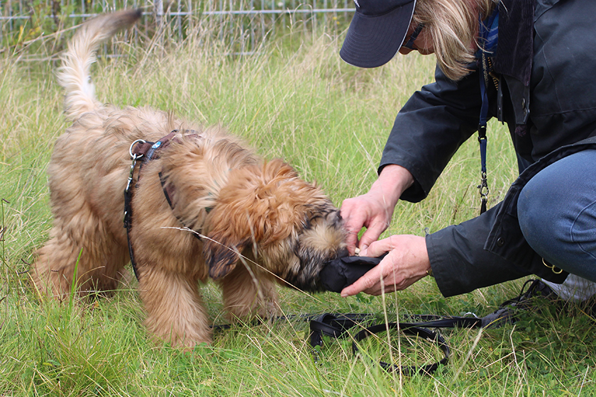 Cooper ist schon ganz begeistert von seinem Dummy.