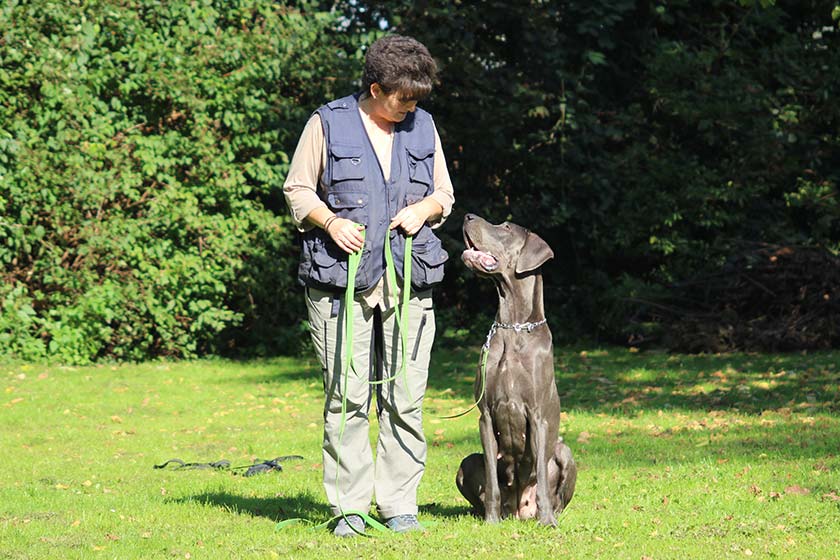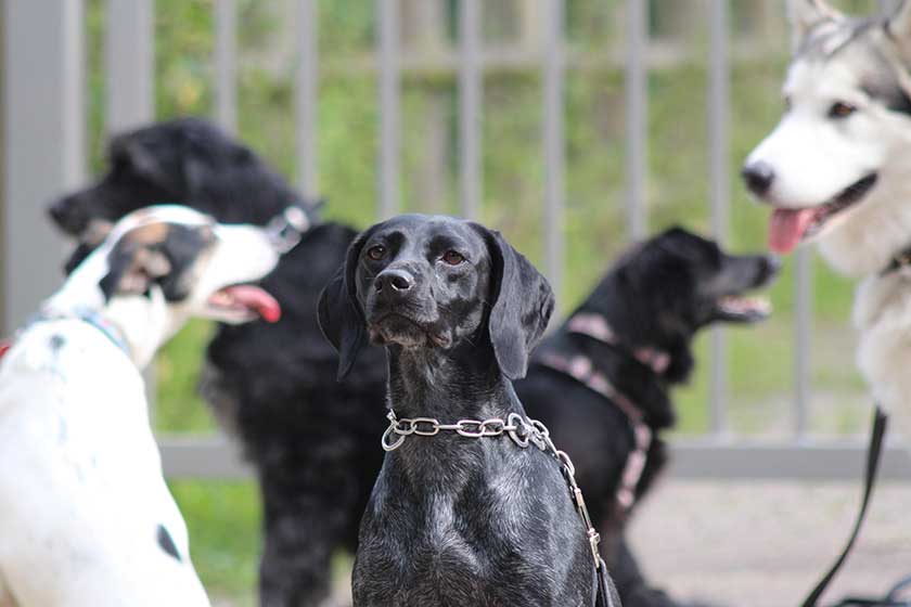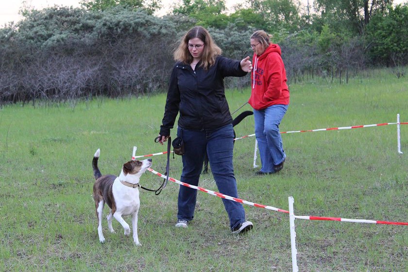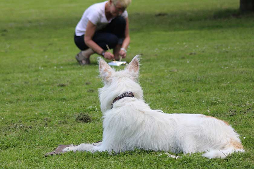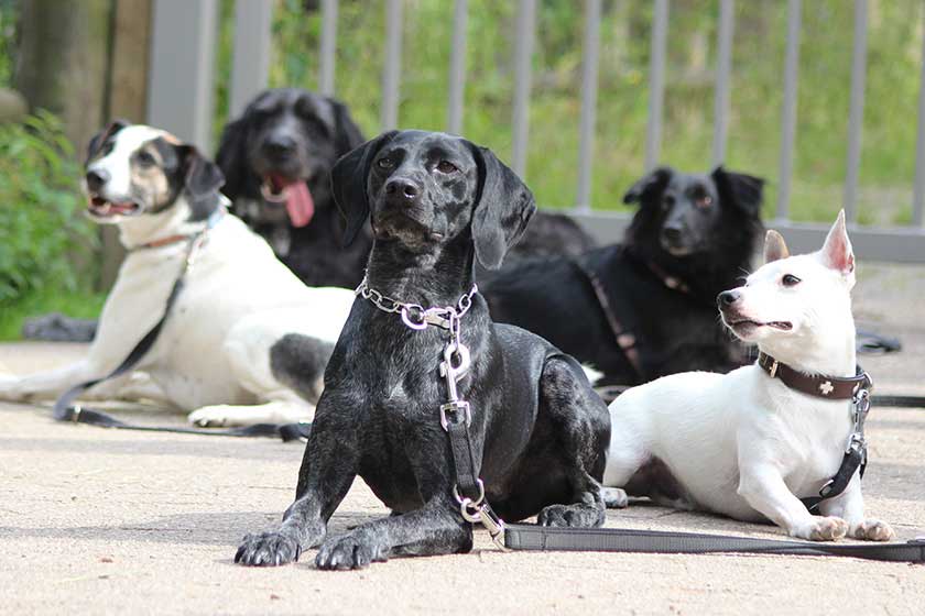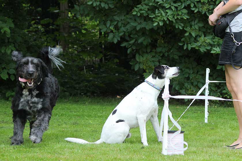 Nach und nach lernen die Hunde ruhiges Sitzenbleiben und Abwarten bis Frauchen oder Herrchen wiederkommt.