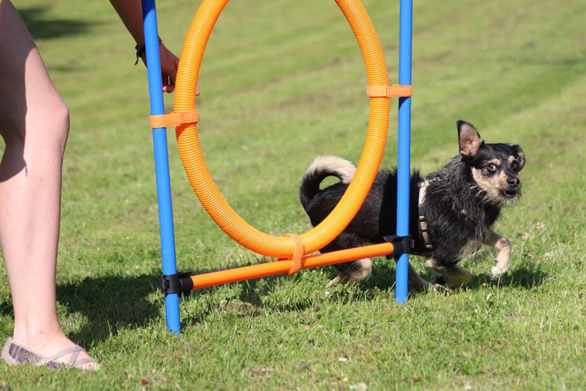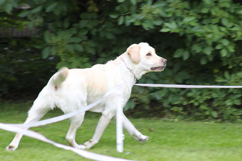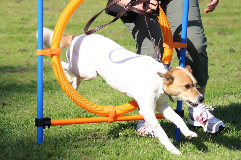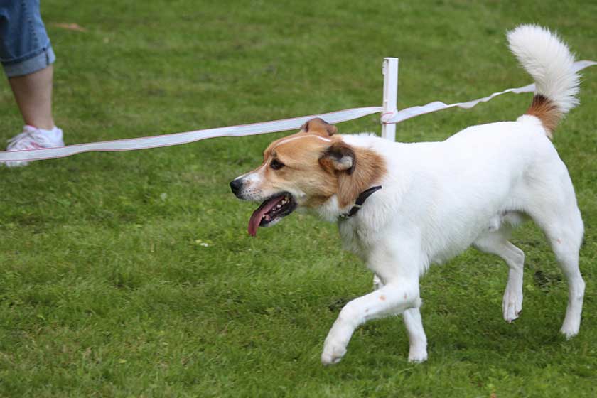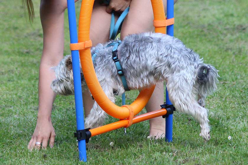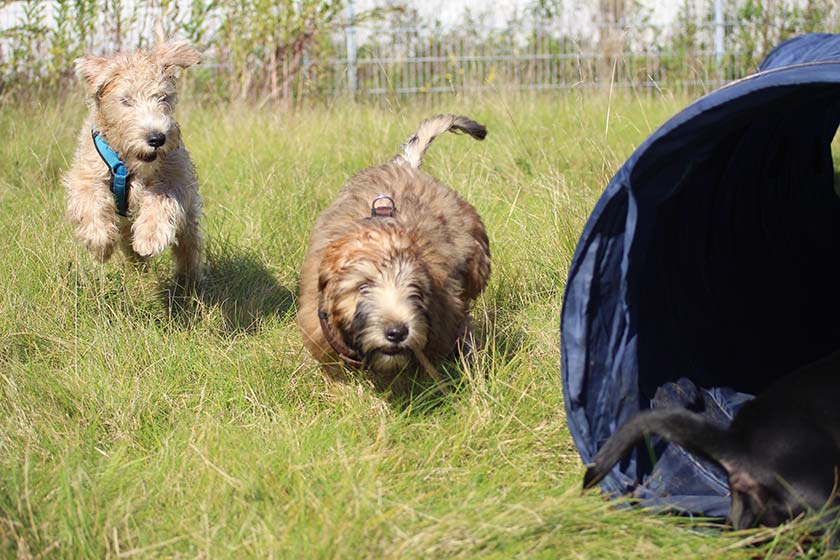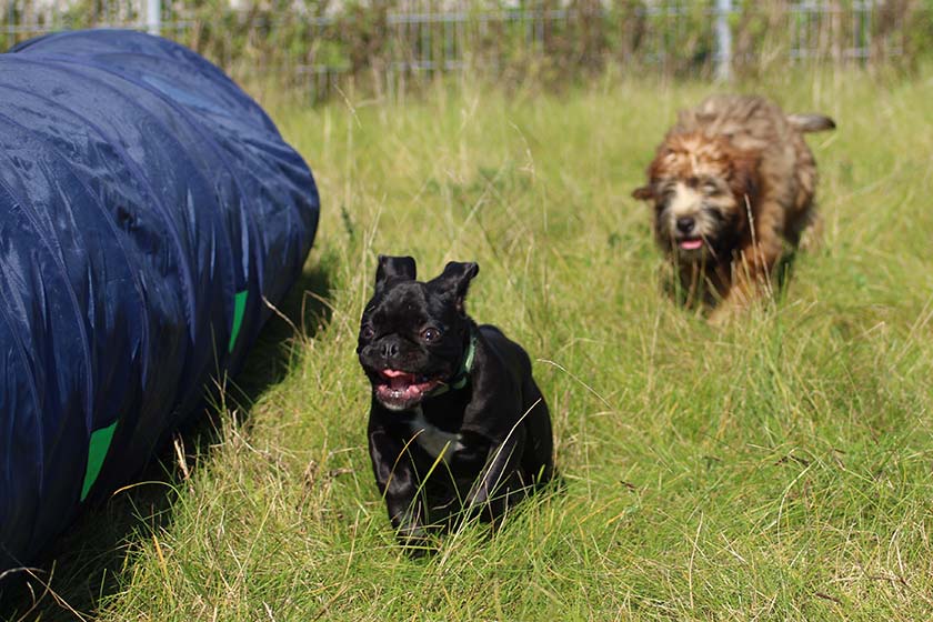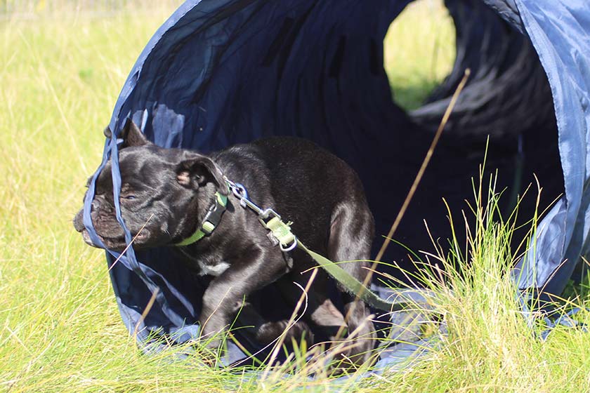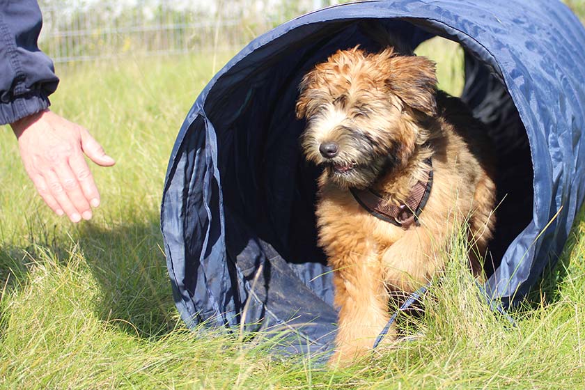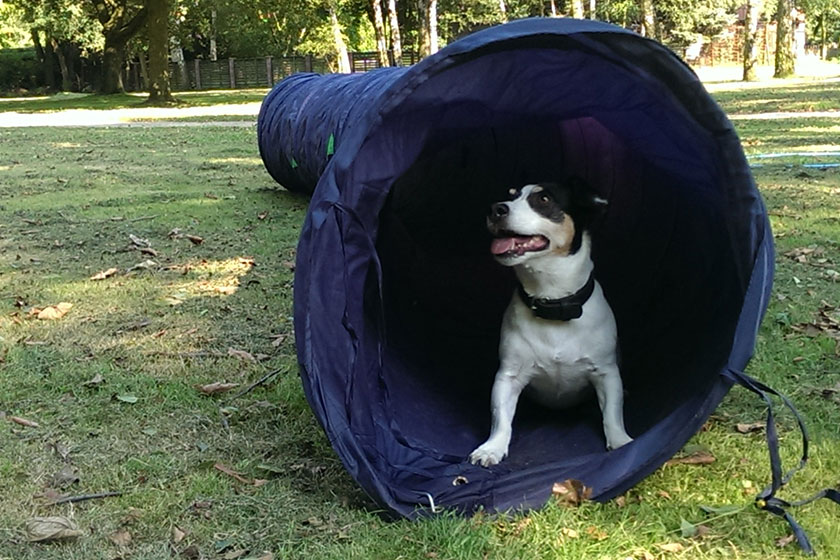 Erstes Hindernis des Parcours: der Tunnel. Jack schießt raus und schaut schon erwartungsvoll auf neue Anweisungen, wo es weitergeht...