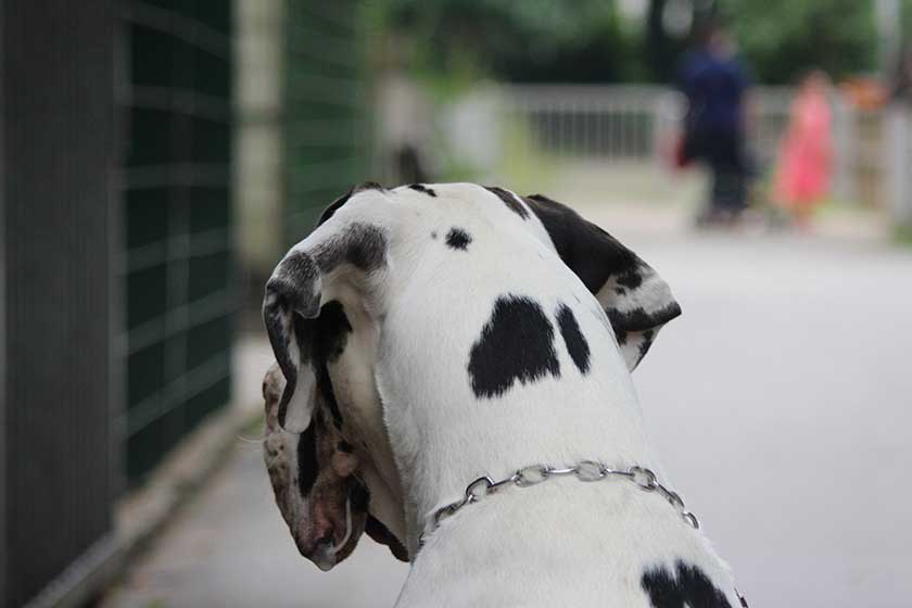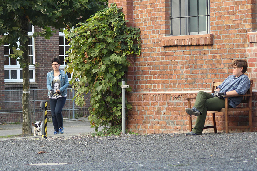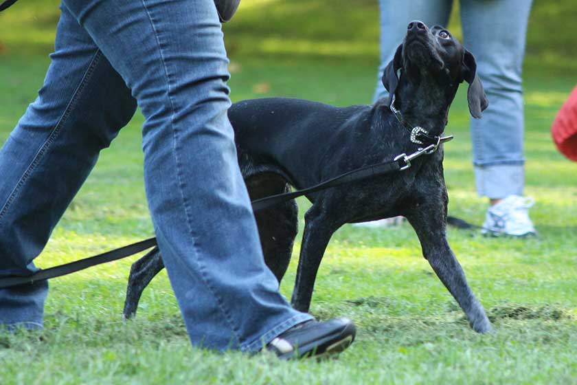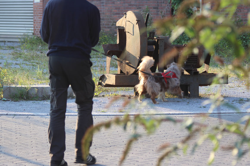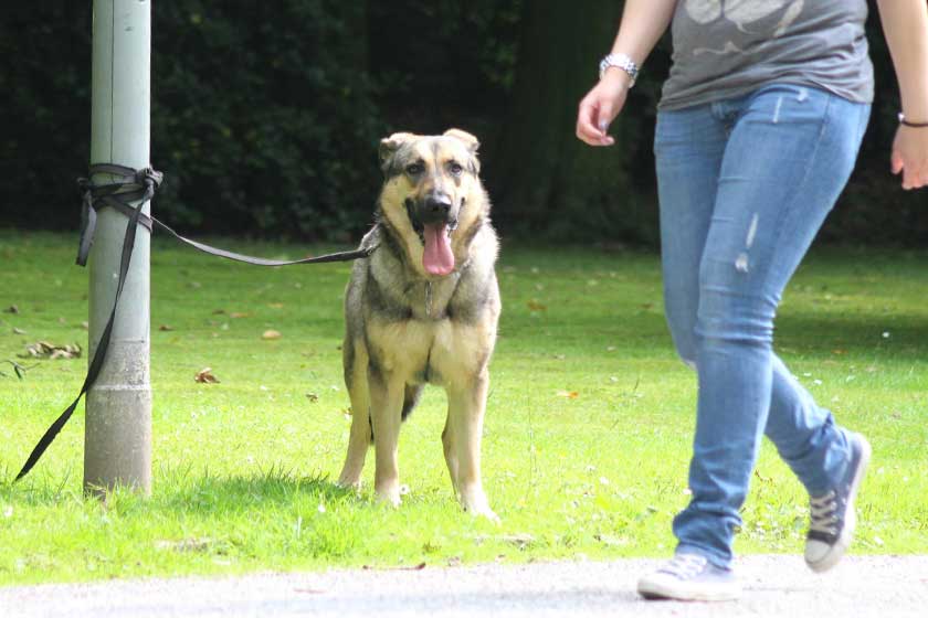 Wie verhält sich der Hund, wenn er angebunden warten muss und sich plötzlich vor ihm etwas abspielt...