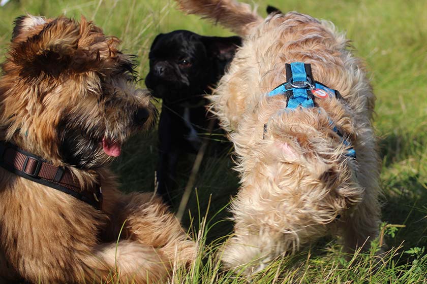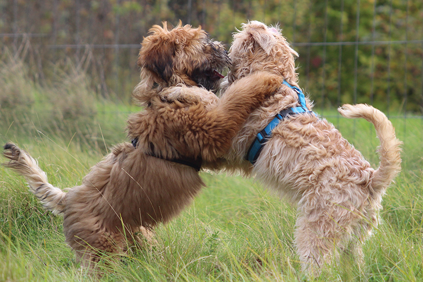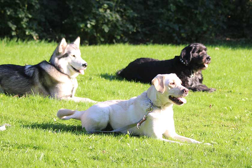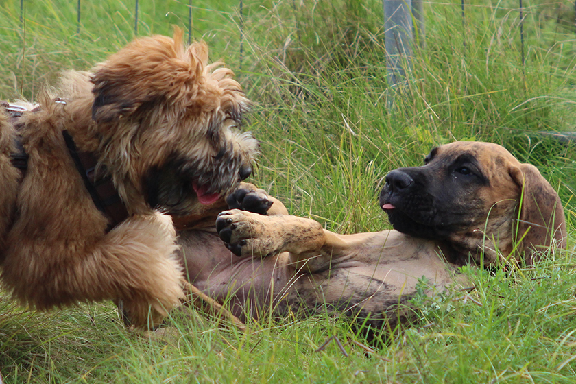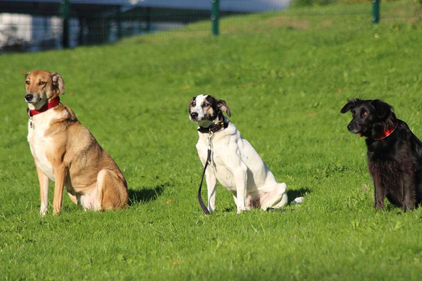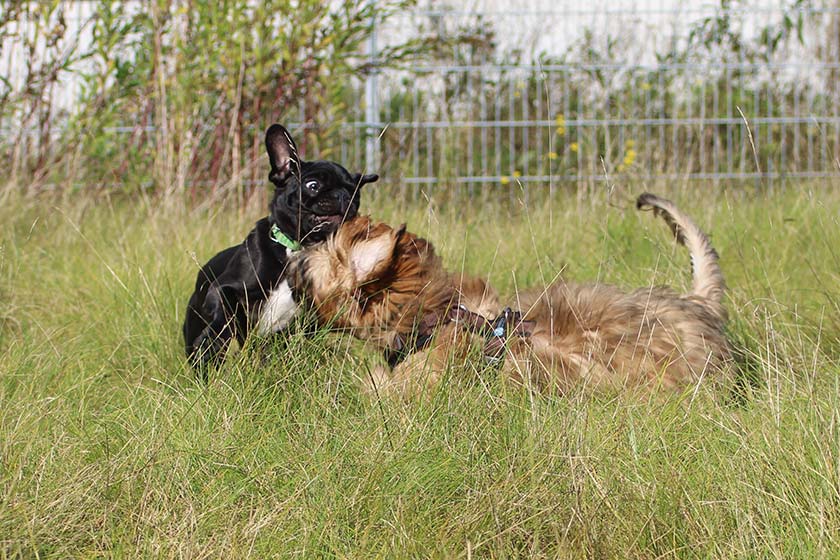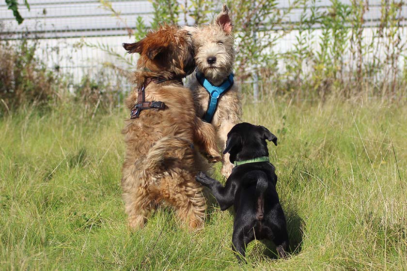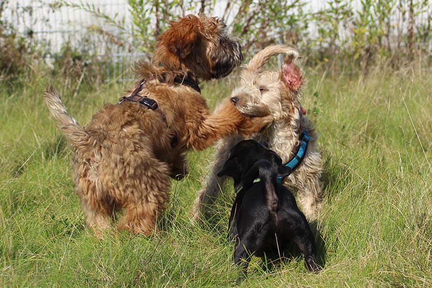 Und nach dem Lernen darf eine ausgiebige Spielzeit mit den Hundekumpels nicht fehlen.