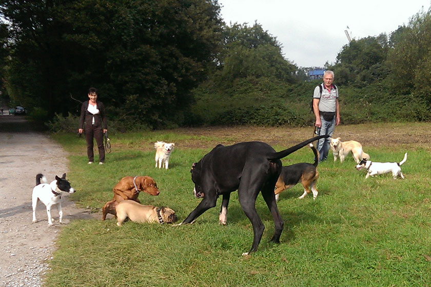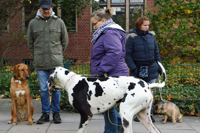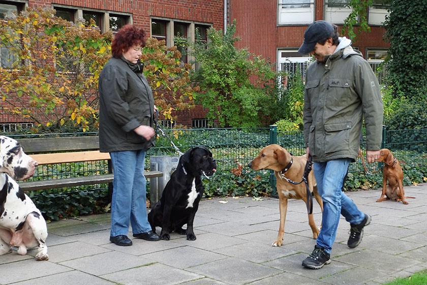 Gegen Ende der Stunde beeindruckt kein Rollator oder Spaziergänger mehr die Hunde.