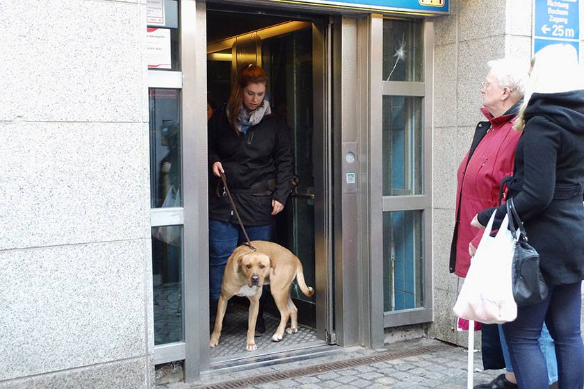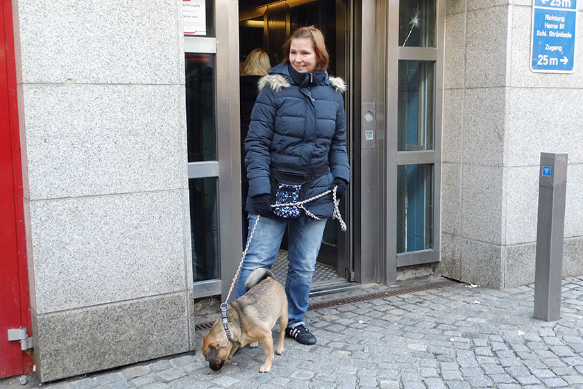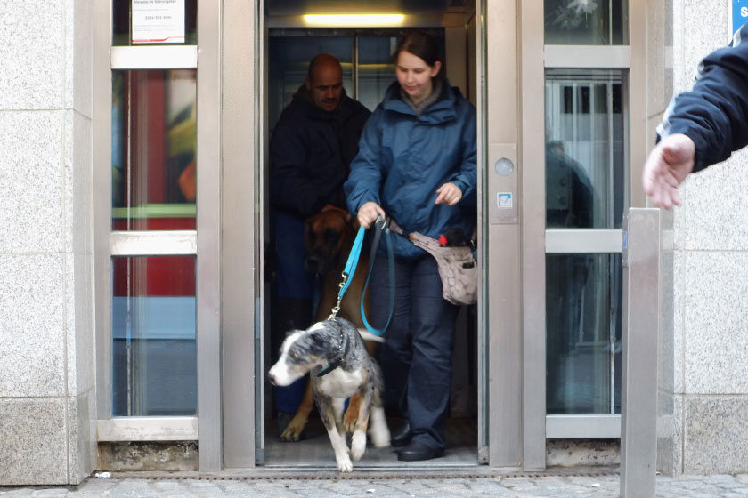 Bella zeigt deutliche Beschwichtigungsgesten - Fußgänger, Rollstuhlfahrer...