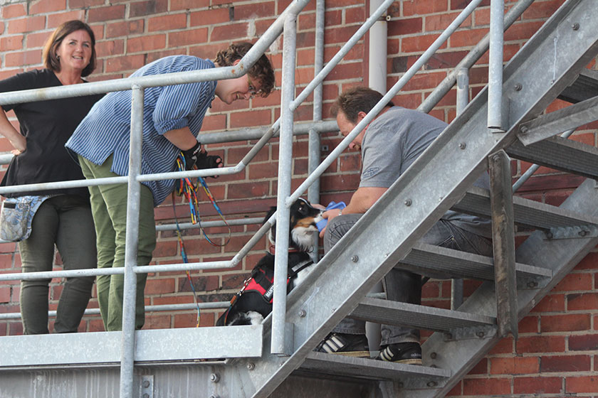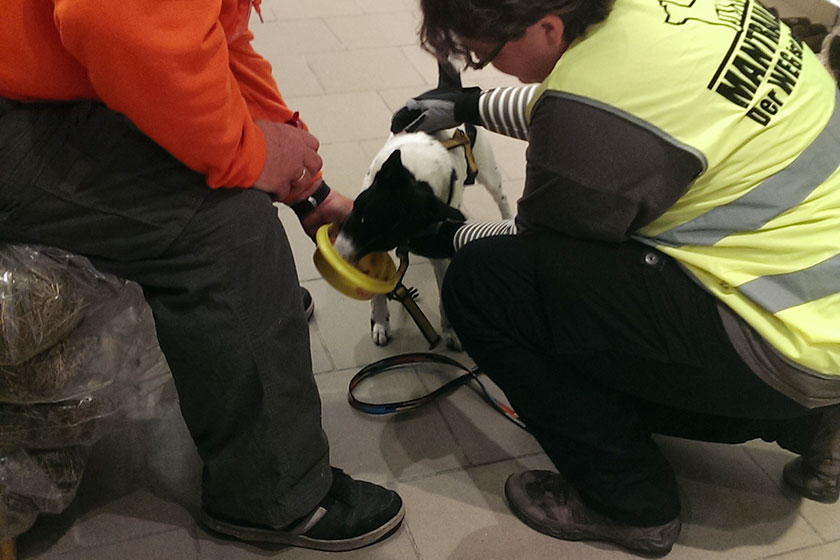 Auch das Flatterband, was Hunden häufig Angst macht, wird routiniert genommen.