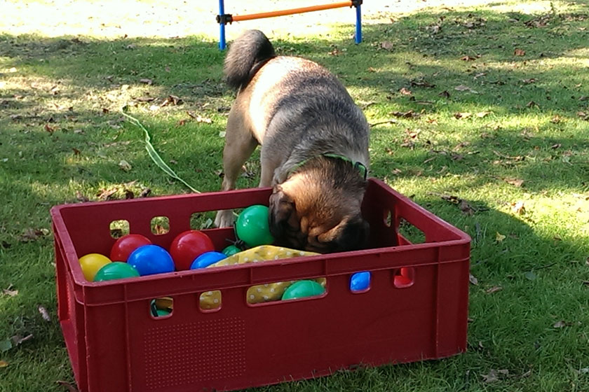 Nicht ganz einfach sich aus den ganzen Spielzeugen eines heraus zu suchen und zu apportieren.