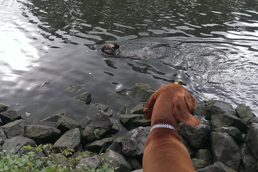 Max und Churro können problemlos aneinander vorbeilaufen, ohne sich ablenken zu lassen.