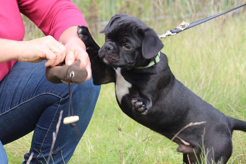 Ein "alter Hase" in der Welpengruppe. Leo weiß, wenn er brav mitarbeitet, wird gleich getooooobt.
