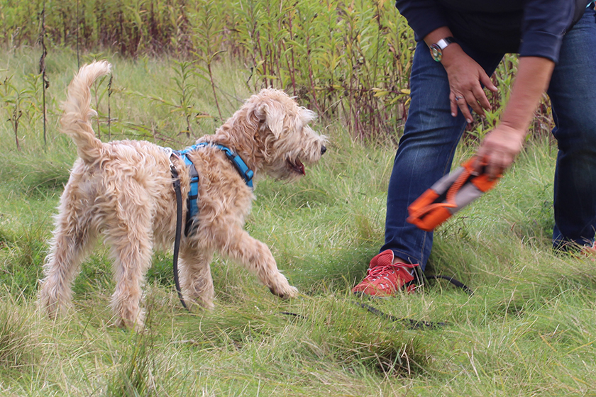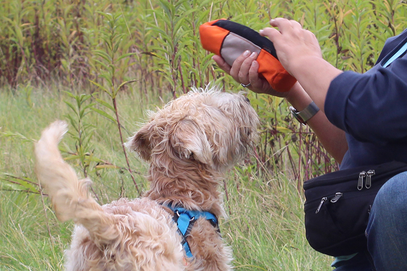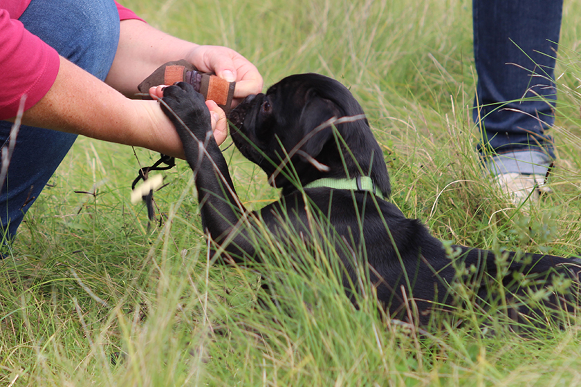 Cooper ist schon ganz begeistert von seinem Dummy.