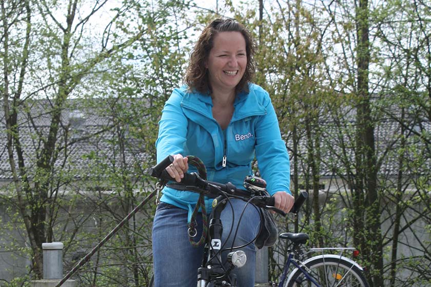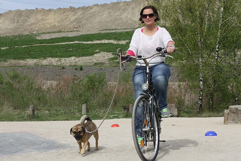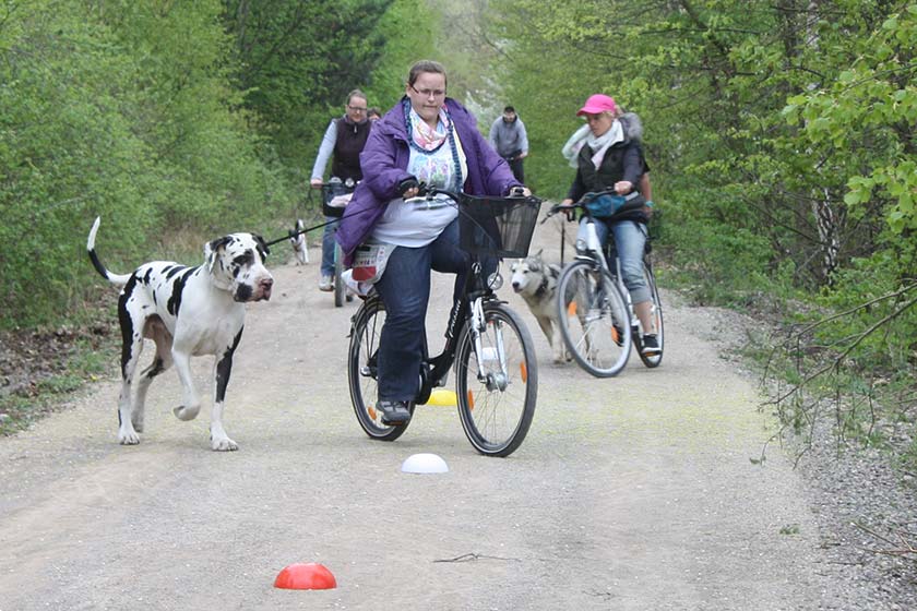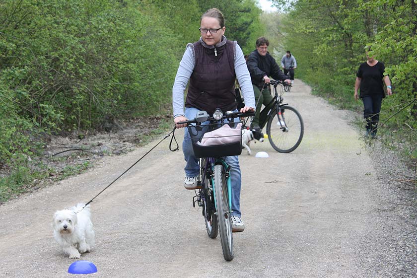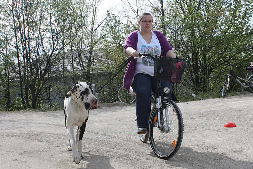 ... und Fahrradfahrer sind ihr unheimlich. Aber mit Geduld und Übung wird sie bald entspannter damit umgehen können.